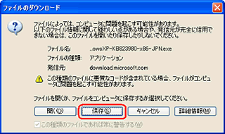 [ファイルのダウンロード]が表示されますので、[保存]をクリックします。 |