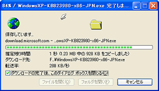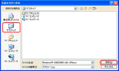 ダウンロードが終了したら、デスクトップの画面上に[WindowsXP-KB823980-x86-JPN]が作成されていることを確認します。 |