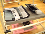 | テレビチューナーカードとモデム・LANカードをラザーと呼ばれるパーツに差し込み、それを本体に取り付けます |