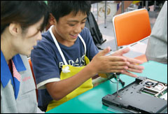 皆さんに作っていただくパソコンはその1700万台の内の30台ということになり、慎重に作業して工場で生産したものと同等、またはそれ以上の品質で作っていただきたい。