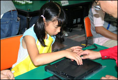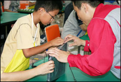 パソコンが完成したので、早速電源を投入することに。緊張の瞬間ですが、無事に起動すると子供たちはうれしそうに喜んでいました。思わず一斉に拍手が沸き起こりました。中には起動できないお子さんもいましたが、すぐにスタッフが原因を調査。ちょっと部品の接触が甘い箇所があったので、直すと無事動くようになり、最終的には無事に全員のパソコンが起動することができました。