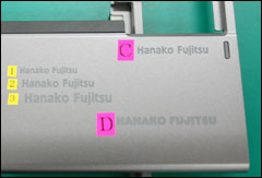 ステッカーのほか、参加した記念にパソコンにネームを入れることもできました。サンプルを見ながら、ネームの内容や位置を好きなように指定することができます。 |