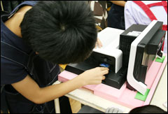 子どもたちに実際に組み立ててみた感想を聞いてみると、「むずかしいけど、面白かった」と答えてくれました。特にケーブルの配線が難しかったようで、この点は昨年も同様の感想がありました。そのため、今年はケーブルと、それに対応するコネクターの部分にそれぞれ番号のシールを貼る工夫がなされていました。また、2組に1人、工場の専属のスタッフがついてサポートしていましたので、全員が約2時間で組み立てを完了することができました。