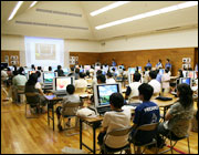 起動を確認した後、引き続きパソコン使い方教室が開かれ、インターネットに接続する方法などを学びました。
