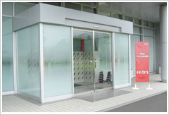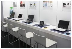 | 島根富士通の玄関にはノートパソコンがずらり。自分で組み立てるのが待ち遠しくなりますね。 |