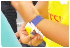 司会者の説明のもと、静電気対策のアースバンドと作業用のエプロンを着用し、準備万端。いよいよ組み立てスタートです。