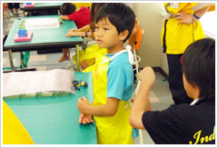 組み立て作業では、1組の親子にスタッフが1名付き、最初から最後まで組み立てをサポートします。