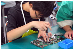 株式会社島根富士通および富士通株式会社は、2009年8月8日(土曜日)に「富士通パソコン組み立て教室」を開催しました。会場はノートパソコンの生産拠点である、株式会社島根富士通(島根県簸川郡斐川町)。ノートパソコンの組み立て教室は今年で4回目となります。