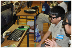 その後、組み立てたばかりのパソコンを使ったパソコン演習を実施。「世界初の3つの3D体験」演習と題し、親子で3D動画を撮影して楽しんだり、今回組み立てた3Dパソコン独自の最新機能を堪能していただきました。