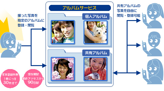 *AzbyMobile会員で、JPEG対応iモード携帯電話ユーザーであれば、共有アルバムの写真を閲覧できます。