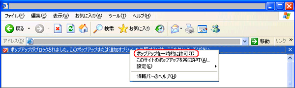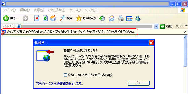 Windows(R) XP SP2のInternet Explorerには、Webサイトが新しいウィンドウを自動的に開けないようにするポップアップブロックと呼ばれる機能があります。