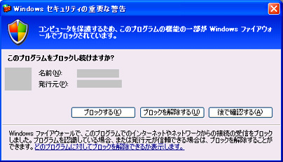 これは、ソフトウェアがネットワークに接続しようとしていることを「Windows ファイアウォール」が感知し、接続しても問題ないかどうかを確認するためのウィンドウです。