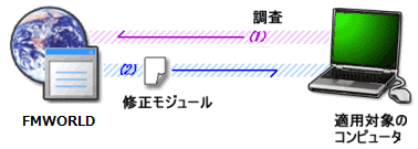 - インターネットに接続し、FMWORLDに未適用の修正モジュールがあるか調査します。