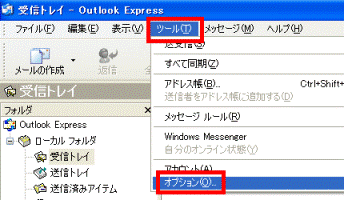 - 「ツール」メニュー→「オプション」の順にクリックします。