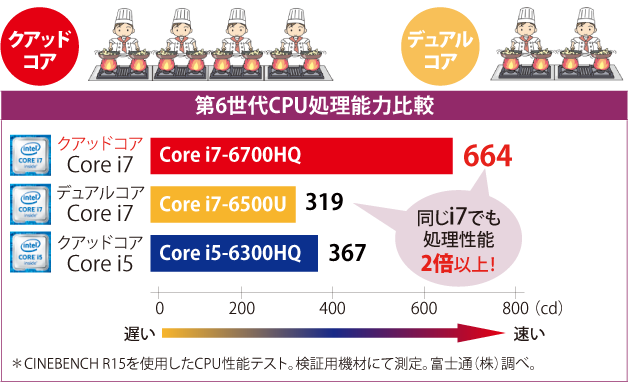 ・『カスタムメイドモデル』とは、目的や予算に合わせて、仕様やソフトウェアなどを選択することができる富士通直販サイト「WEB MART」でのみ販売している専用モデルです。