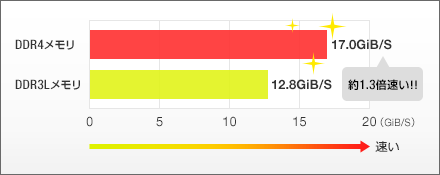 「DDR3Lメモリ PC3L-12800」と「DDR4メモリ PC4-17000」との比較です。