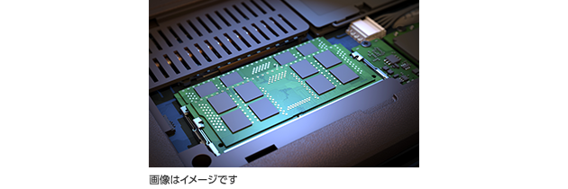 16GBまたは8GBのデュアルチャネルに対応した高速なDDR4-PC3200メモリを搭載。(注5)
