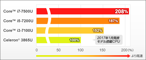 17年1月モデルに搭載のCelerenの性能を100%として比較しています。