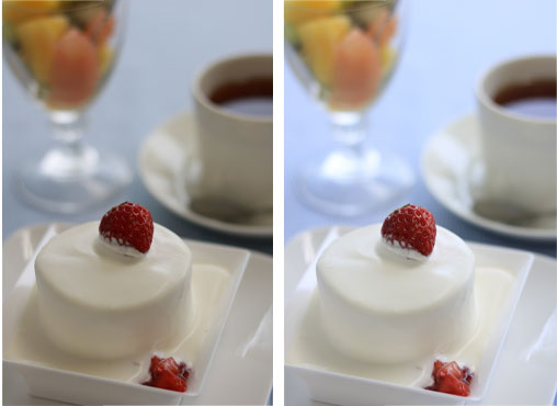 最終的にこの写真には「中間調」だけでなく、コントラストをやや弱くして画面を柔らかな雰囲気に、さらに色も少し補正して、クリームの白さを強調しています。