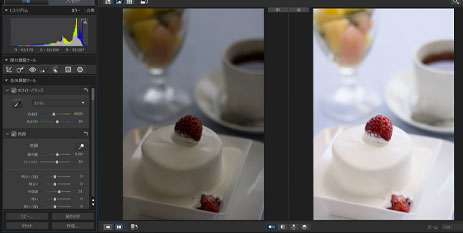 また、このとき、元の写真と調整中の写真を並べて表示にし、比較しながら行うと、よりイメージがつかみやすいでしょう。