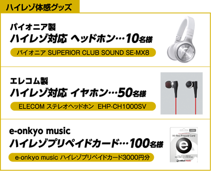 • e-onkyo musicハイレゾプリペイドカード3千円分(100名様)