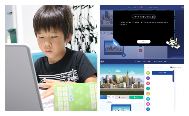 正直、小学2年生にプログラミングなど無理だと思っていました。ところが、2日目くらいにはキャラクターを右へ左へ!初めの取りかかりさえ掴めば難しくないことを子どもから教えてもらいました。