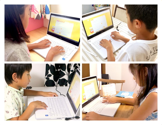 スマホやタブレットにはないパソコンならではの「タイピング」。「ふくまろタイピング」なら、ふくまろと一緒にキーボードで文字入力を基礎から学べるほか、全国ランキングでユーザーとタイピングを競える機能も。今回はじめてキーボードに触れた4人のお子さんたちは、どのように使いこなしているのでしょうか?