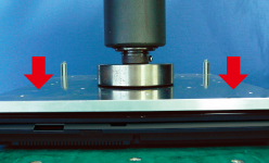 パソコンの利用環境や起こりうるアクシデントを想定して、落下試験や加圧/振動試験、液晶の開閉試験など、数々の厳しい試験を実施。高い堅牢性を試験しています。