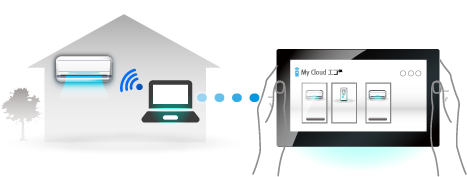 例えば、パソコンからエアコンの運転を操作することも。