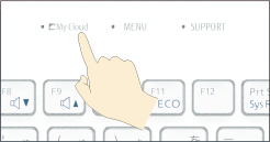 My Cloudは、キーボードの「My Cloud」ボタンで手軽に始められます。ボタンを押すと「My Cloud ホーム2.0」が起動し、 My Cloudでできるさまざまな機能が確認できます。My Cloud関連アプリのアップデートも一覧で見ることができます。