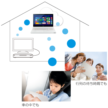 さらに自宅では、ワイヤレスで録画番組をダウンロードできるので、外出先で電波状況を気にせず(注)楽しむこともできます。