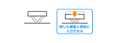 人が「キーを押した」と感じる瞬間はどこなのかを徹底的に追求。キーが底につく前に入力信号を発信することで、感覚と操作のズレをなくしました。