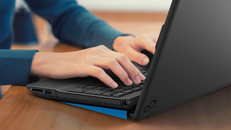 15.6型大画面を搭載しながらも、画面の周りを狭額縁化し、賞状やグラフ誌などと同じB4サイズに収まるコンパクトなサイズにしました。家中の移動も苦になりません。