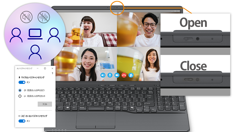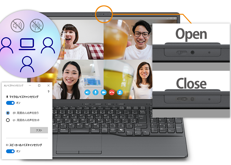 AIノイズキャンセリング & プライバシーカメラシャッター