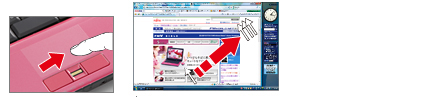 フラットポイント上で指をすばやくスライドさせると、フラットポイントから指を離した後も、ポインタがしばらくスライドさせた方向に動きます。