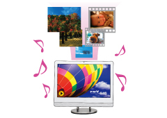 ビデオデータや写真データと、その映像に合わせたい音楽データを選択して、「muvee作成ボタン」をクリックするだけで、ミュージックビデオが誰にでもかんたんに作れます。同じ映像も気分に合わせて音楽を変えれば、印象を変えて楽しめます。 |