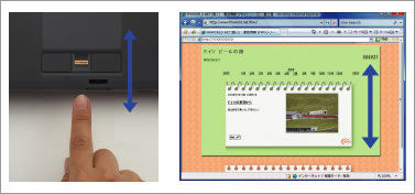 指先をスライドさせると画面スクロールができるので、ホームページの閲覧などが快適に行えます。 * 「簡易ユーザー切り替え機能」にした場合、スクロール機能はご利用になれません。 |