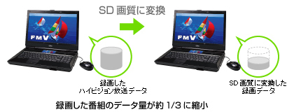 録画したテレビ番組のデータ容量を縮小することができます。SD画質に変換し、元のハイビジョン放送データを約1/3に縮小することができるので、ハードディスクの空き容量を増やしてどんどん録画することができます。