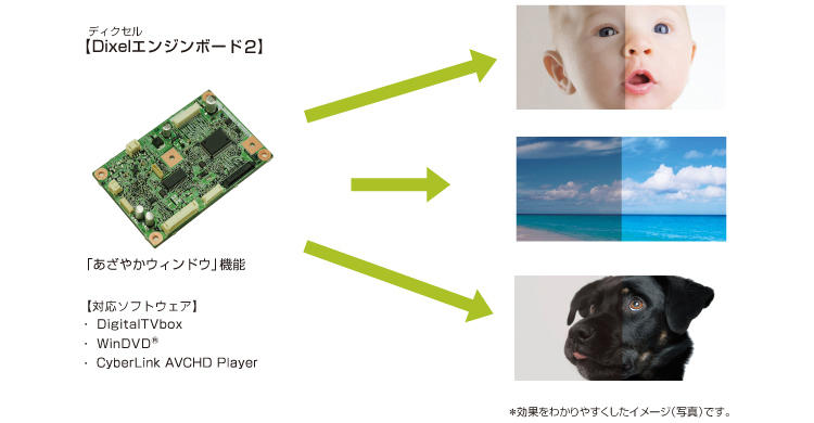 富士通独自の機能で、テレビ視聴画面をあざやかに表示します。 |