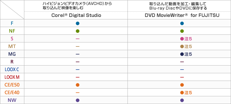 注3 「DVD MovieWriter® for FUJITSU」に対応しているハイビジョンビデオカメラ(AVCHD)については「ULEAD」の専用ページをご確認ください。