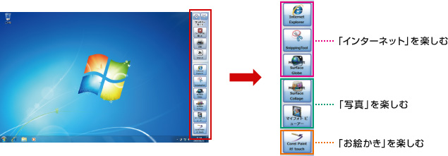 「タッチ操作パネル」からWindows® タッチの楽しさをスタートできます。