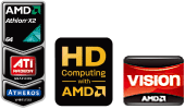 NF/E40Nでは、「AMD Sempron™プロセッサ M100」、「AMD Athlon™ II デュアルコア・プロセッサ」のCPUを選択できます。「AMD Athlon™ II デュアルコア・プロセッサ」を選択すれば、最新チップセット内蔵の「ATI Mobility Radeon™ HD 4200 Graphics」により、大幅にCPU負荷を軽減して、ハイビジョン映像を快適に再生、編集できます。さらに、グラフィック専用の128MBのローカルフレームバッファを搭載し、メインメモリと同時にアクセスさせることにより、グラフィック性能を向上させます。