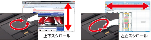 フラットポイント上を時計回りや反時計回りになぞると、指を動かしている間ウィンドウ内の上下・左右にスクロールできます。