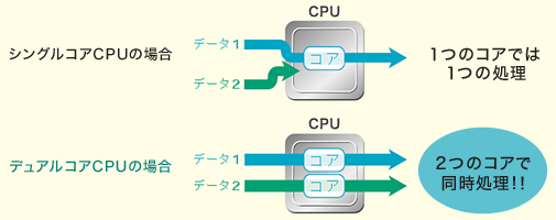 メモリのデータ転送速度を約2倍にするデュアルチャネルに対応した大容量の4GBメモリを搭載し、CPUの処理能力をサポートします。さらに、高速データ転送を実現する「DDR3メモリ(PC3-8500)」を採用(注1)。メモリのデータ転送速度が約1.5倍(注2)となり、Windows® 7やソフトウェアの起動、動作をよりスピーディーにします。