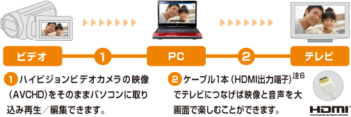 映像と音声をケーブル1本で大画面テレビにデジタル出力できます。(注5)
