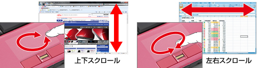 フラットポイント上を時計回りや反時計回りになぞると、指を動かしている間ウィンドウ内の上下・左右にスクロールできます。