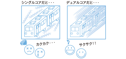 処理速度が高速なので、シングルコアCPUに比べインターネットのハイビジョン(高画質)コンテンツを快適に楽しむことができます。