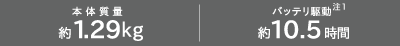 スリムでスマートなデザインで持ち運びに便利な軽量&長時間駆動 |