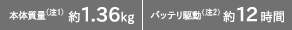 | 注1 | : | 標準内蔵バッテリパック(L)装着時。 |