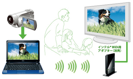 | * | 写真のインテル® WiDi用アダプタは株式会社アイ・オー・データ機器製「WDA-X1」です。 |
